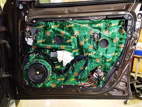 奔馳ML350的原車門板鈑金也很薄弱,喇叭在工作的狀態(tài)下容易產(chǎn)生共振噪音,所以在改裝音響之前需要先給四門做大能超級(jí)盾隔音止震處理,減少喇叭與車門之間產(chǎn)生的共振聲,使喇叭的聲音變得更純厚更集中。