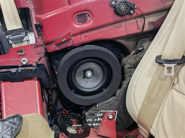 喇叭安裝完畢,前后門板復原效果,整個施工過程快捷謹慎,不會對內飾造成任何影響。