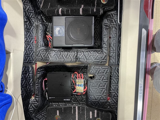 詩芬尼超薄低音與弗萊德FP-6A v2處理器隱藏式安裝在座位底下