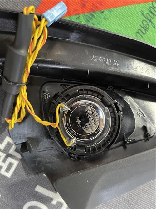 每一位選擇進行汽車音響升級的車主對音樂藝術的理解都有自己獨到的見解和追求,只有找到最適合自己的品味,才可稱之為最完美的藝術。當然,汽車音響改裝是要建立在不影響汽車外觀、內飾和性能的基礎之上,不然,顧此失彼,對汽車造成不可挽救的傷害是得不償失的。改裝師拆下原車喇叭,準備開始專業喇叭的無損替換。