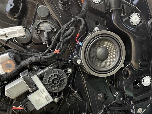 在音響配置的選擇方面,我們的改裝師根據車主要求以及考慮到寶馬325Li的情況,將前聲場喇叭替換成一套詩芬尼寶馬專用高音+中音+低音 各一對,高音的穿透力極強,中音則溫潤、舒適有感染力。兩只詩芬尼寶馬低音則用于補充低音部分,讓整個音場增加了氛圍和動感。后聲場則在門板上無損安裝詩芬尼寶馬專車專用中音一對,全部器材的原位安裝更是節省了時間,也不破壞內飾解決車主的憂慮問題。