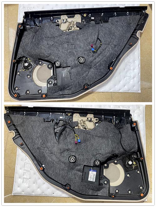 拆下來的門板飾蓋也貼上隔音材料,讓門板形成一個密封箱體,有效減少風噪干擾,并增強音樂立體感