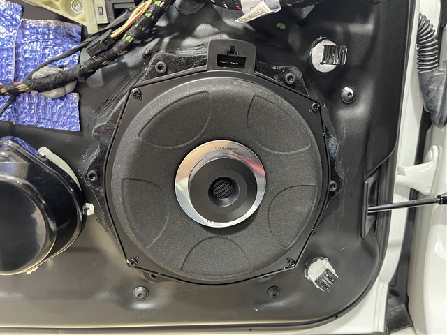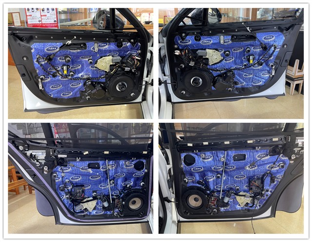 為了確保音響改裝效果達到最佳,我們從四門隔音開始。選擇了大能藍金剛隔音材料,其高密度吸音效果和卓越的隔音性能,有效消除了車內噪音和共振現象。這為后續音響器材提供了清晰穩定的音場基礎,確保車內音質更為出色。
