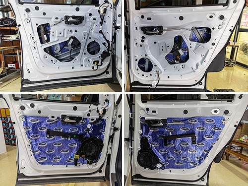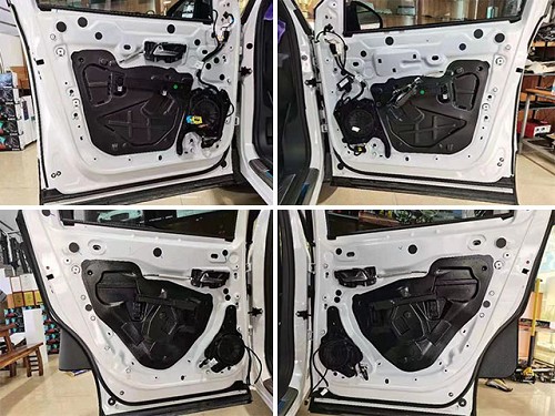 車內的風噪聲有很大一部分是從車門板位置傳遞到車廂內的。海林技師對車門板進行加強型隔音處理措施。首先用藍金剛對車門鈑金層進行雙層密封和止震處理,然后再用超級溫莎棉對車門飾蓋進行吸音處理,將風噪層層隔絕在外。