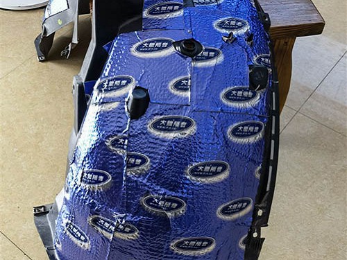 針對標致5008汽車內部的胎噪問題,海林改裝師也是著重的加強處理,使用藍金剛+超級溫莎對輪弧、葉子板部位進行四層隔音吸音降噪處理,通過環保有效的隔音材料層層吸收隔絕,抑制胎噪向車內傳入。