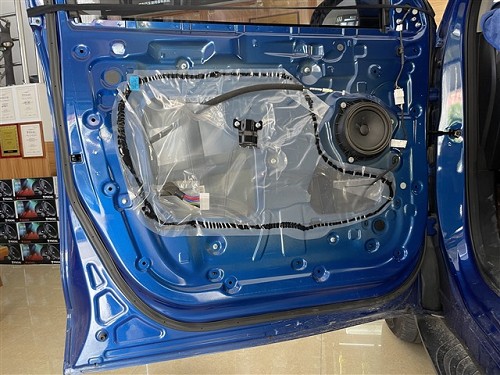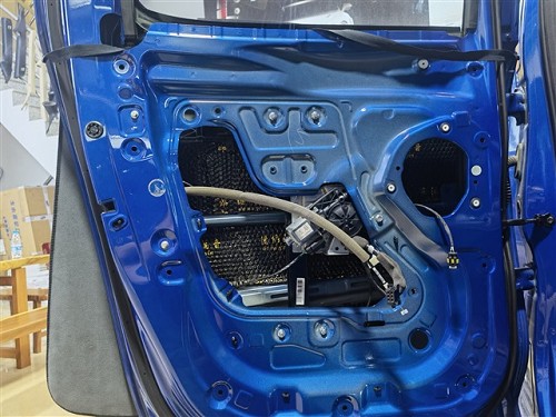 改裝汽車音響少不了對原車隔音進行改善,首先用安德納隔音對四門進行雙層隔音處理,增強門板剛性,減少噪音入侵,提升車內靜謐性。