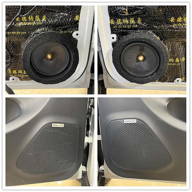 車主在試音室里試聽了法國勁浪165A-GL喇叭后,便對它一聽鐘情!隨即便決定用來升級前聲場。安靜的車廂是升級音響的前提,所以汽車隔音也要做好!先使用安德納對門板進行內(nèi)外雙層止震隔音,將空洞的原車門板打造成解釋封閉的“箱體”,降低行車中鐵皮共振產(chǎn)生的噪音或外界傳入車內(nèi)的噪音,加倍提升安裝在門板原位的喇叭的音質(zhì)。