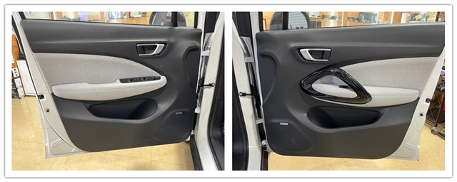 前門板使用安德納進行內(nèi)外雙層隔音,門板飾蓋使用白棉進行填充,有效抑制共振產(chǎn)生及減少風(fēng)噪的傳入,打造一個安靜的車廂環(huán)境