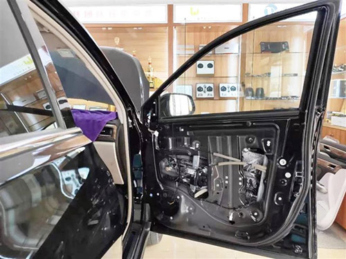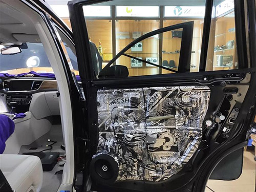 在安裝喇叭前需要對車門做隔音處理,讓車門形成家庭音響的密閉箱體,高音與低音之間互相銜接,釋放最帶感的音樂。門板內(nèi)層使用俄羅斯stp小炸彈進(jìn)行隔音止震。外層使用滿貼工藝,讓門板形成一個(gè)密封的箱體,讓中低音更加渾厚有力。