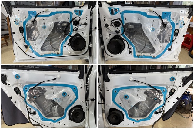 原車門板僅有一層塑料薄膜,隔音效果有限。技師拆除原薄膜后,使用GT隔音材料對四門進行了雙層隔音處理,有效抑制振動并提升車門密封性,為喇叭提供更好的工作環境。