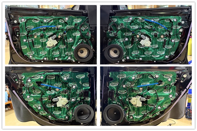 前后門板使用大能超級盾進行專業隔音后,原位無損安裝中低音喇叭