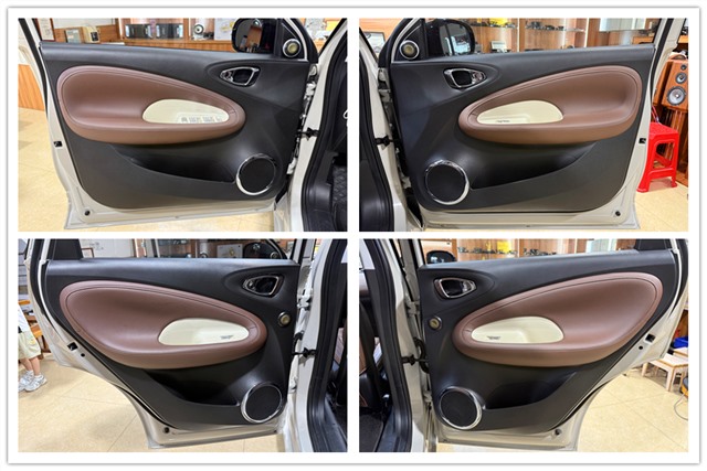 為了給喇叭創造一個更加安靜、干凈的聽音環境,改裝師使用大能超級盾對四門和尾箱區域進行了專業隔音處理。大幅削減車內共振和噪音干擾,提升整體車廂靜謐性。在與車主充分溝通后,前后聲場選用法國勁浪ES 165 KE兩分頻,中低音原位安裝在前后門板,搭配隔音處理,有效提升中頻飽滿度和低頻的下潛力度;高音分別安裝在前門三角位和后門板上。