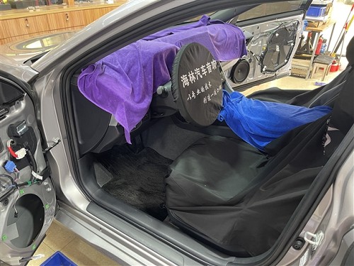 前后門板使用大能藍金剛進行第二層隔音處理,進一步降低噪音,打造一個安靜舒適的車廂空間