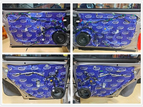 前后門板使用大能藍金剛進行第一層隔音處理,加強鈑金剛性,減少振動