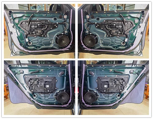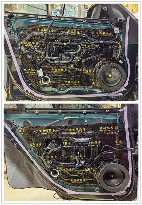 安靜的車廂是升級音響的前提,所以汽車隔音要做好!改裝師先使用安德納對門板進行內外雙層止震隔音,將空洞的原車門板打造成解釋封閉的“箱體”,降低行車中鐵皮共振產生的噪音或外界傳入車內的噪音,加倍提升安裝在門板原位的喇叭的音質。