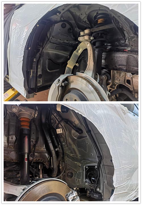 我們對輪弧鈑金及內襯板進行了徹底的清潔和準備工作,以確保隔音材料能夠完全貼合表面