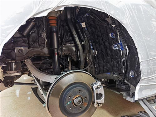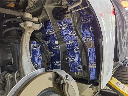 拆下來的葉子板使用大能吸音材料進行吸音隔熱處理,吸收車輛輪胎產生的噪音,阻擋聲音傳遞到車廂內