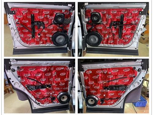 前后門板使用大能紅派進行雙層隔音后,原位無損安裝喇叭