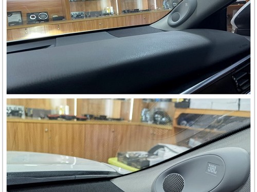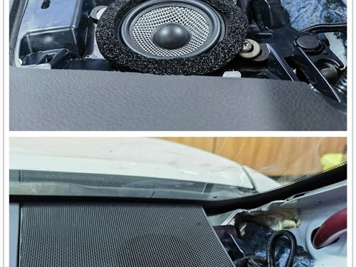 勁浪165AS3中音喇叭無損安裝在儀表臺的細節展示