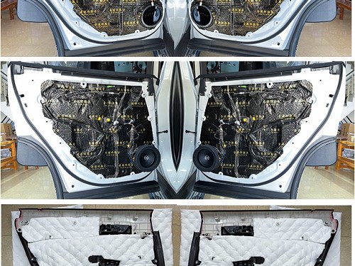 后門板施工中,四門隔音為聲場喇叭制作了一個密封的箱體一般,有效阻止了風噪的傳入,為聲場喇叭創造了一個良好的工作環境。