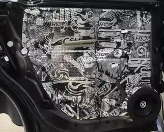 在升級音響前,我們先做好隔音的施工。改裝師選用的是STP小炸彈做四門隔音,這個材料可以有效隔熱、減震、強化鈑金,使車身鈑金強度提升2倍以上,抗變形能力增強,防止汽車車身因沙石撞擊產生凹陷,改善喇叭的環(huán)境,還原原車喇叭的音質效果。