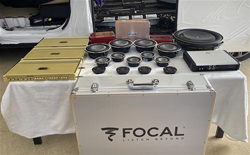 由于升級發燒級別器材較多,經過考量與節省車內的使用空間,改裝師決定做尾箱倒模工藝。將處理器、功放等器材隱藏式安裝。再為汽車添加一只美國捷力12W6 12寸超低音,一臺美國捷力1200.1單路功放配合推動,增加了低頻的下潛,為汽車帶來激情澎湃,強勁有力的震撼低音,讓音樂的氛圍感更強,對氣氛的渲染力十足。升級使用的音響器材品質出色,但是功耗也比較大,直接推動會有很多的問題,因此改裝師為前后聲場喇叭,添加了三臺詩芬尼小黃金四路功放。而為了保證音頻信號的干凈完整,還在音源端為音響系統添加了一臺發燒友專用的高端專業歌航G2pro數播處理器,讓頻段銜接順滑自然,還原出更加逼真的舞臺效果!