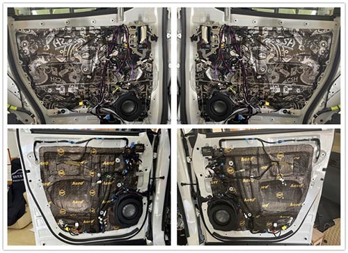 前后門板使用環保隔音材料進行隔音后,在門板原位無損安裝中低音喇叭