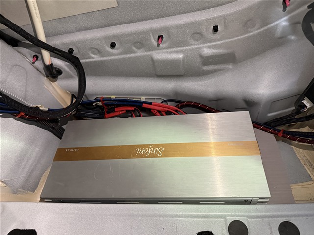 想要音響效果好,加裝超低音必不可少。為滿足車主對低頻的需求,我們在尾箱安裝了一只黃盆10寸低音喇叭,并配備一臺弗萊德FS-1單路功放進行驅動。升級后,低音表現力十足,低頻下潛深且富有彈性,為整套音響系統提供了強勁的低頻支持。