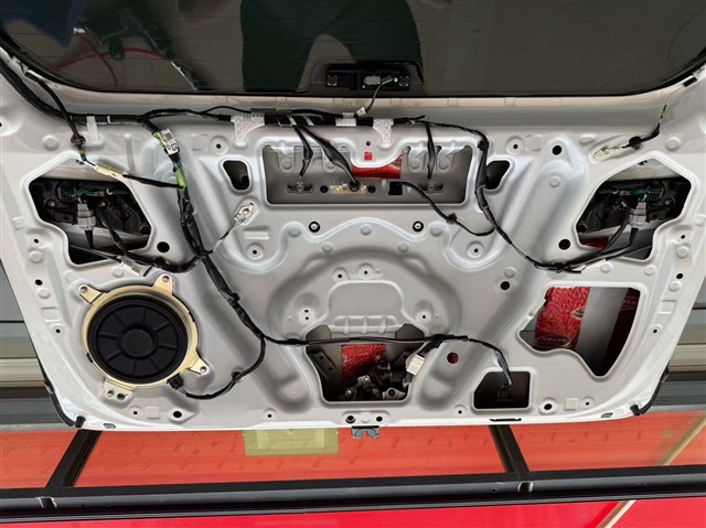 引擎蓋 區域我們使用 大能紅派 與專用 銀衛士 做雙層隔音。紅派負責減少引擎振動帶來的蓋板抖動,銀衛士則能有效反射發動機艙的熱量,保護引擎蓋漆面,同時降低發動機工作噪音向車廂內的傳遞。尾門 結構與車門類似,我們使用 紅派 進行止振處理,確保車輛后部的靜謐性與整體性。