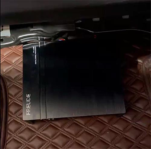 將弗萊德FP-6A V2 DSP功放使用專車專用線束、無損安裝在主駕位座椅下